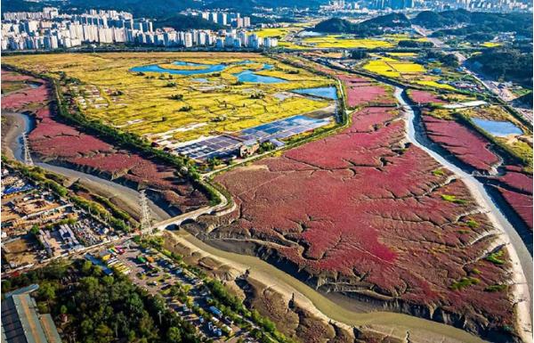 또한 8천년 세월이 빚어낸 사행성 급경사 갯골*은 전국 어디에서도 보기 힘든 지형적 특성을 가지며, 가을철 붉은 카펫처럼 펼쳐지는 해홍나물, 나문재, 칠면초등의 염생식물 군락은 그 자체로 천연기념물급 경관을 자랑한다.